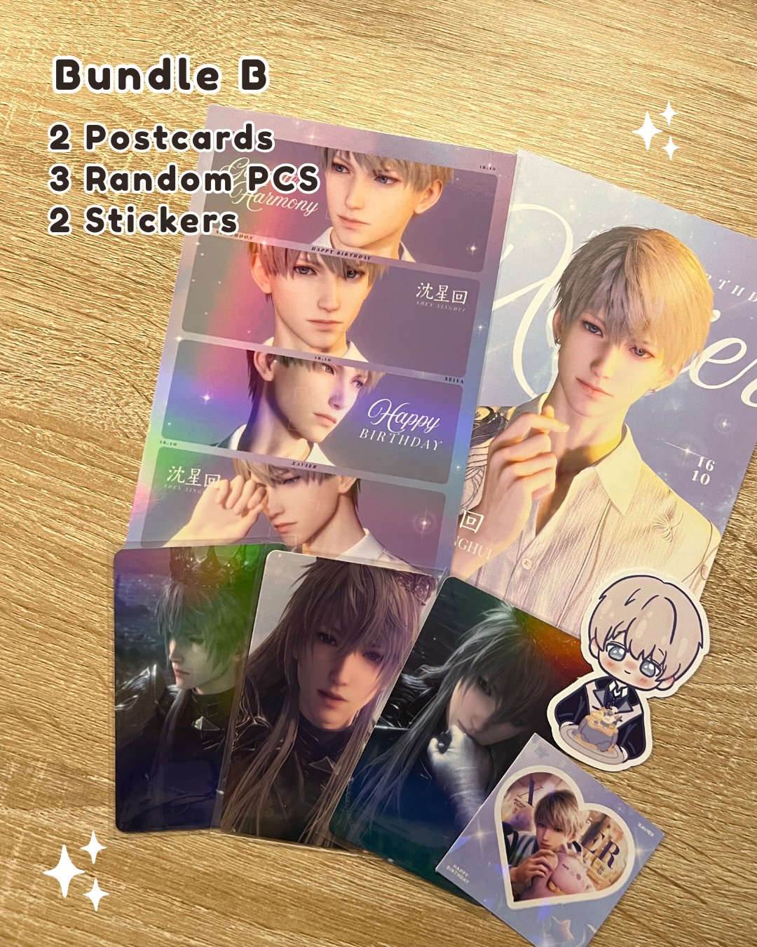 Bundle B - 2 Postcards, 3 Random PCS, and 2 Stickers